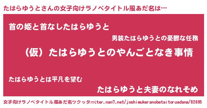 | 男性向けラノベタイトル風あだ名 | 『たはらゆうとの憂鬱』 |