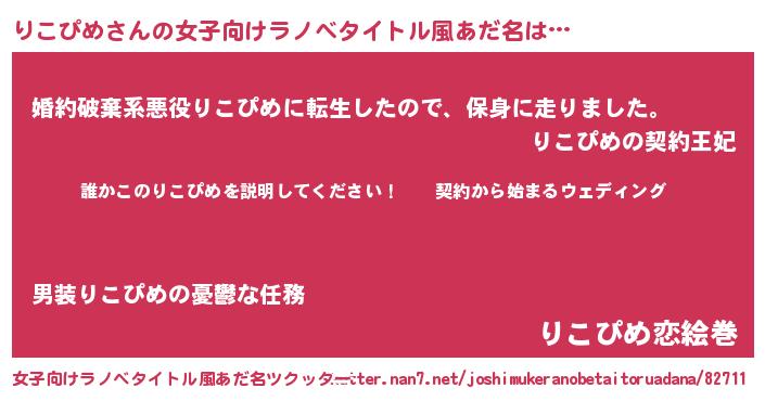 | 男性向けラノベタイトル風あだ名 | 『リコピメアートオンライン』 |