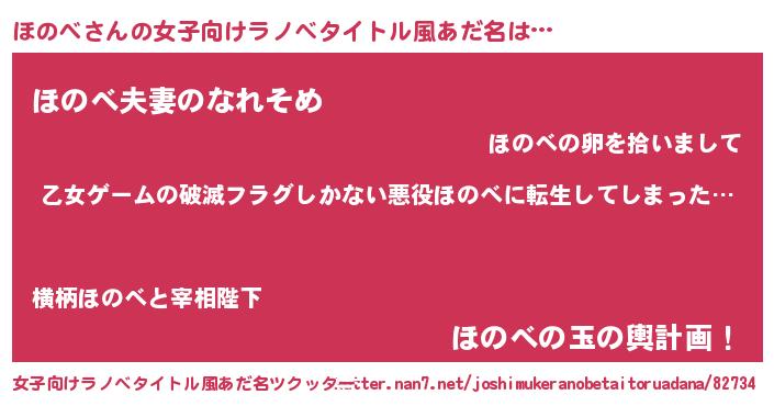 | 男性向けラノベタイトル風あだ名 | 『この素晴らしい世界にほのべを!』 |