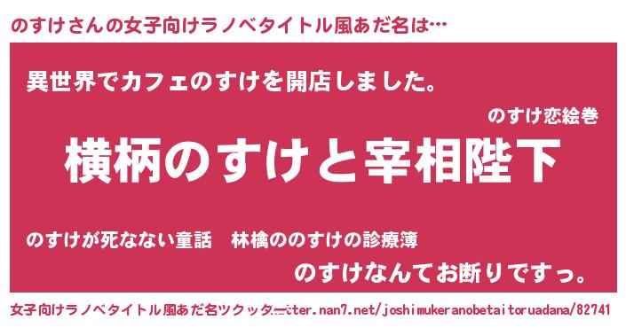 | 男性向けラノベタイトル風あだ名 | 『のすけに滅ぼされるだけの簡単なお仕事です』 |