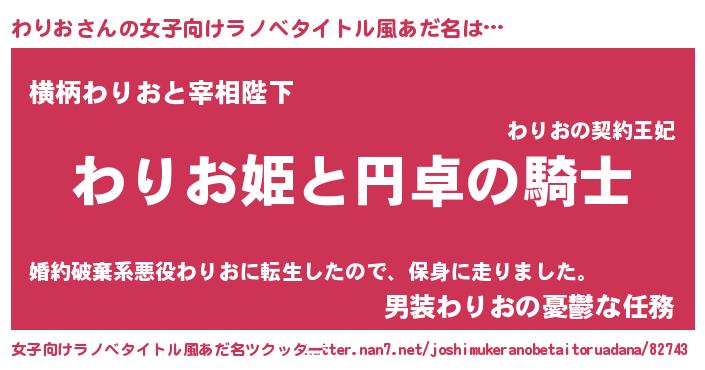 | 男性向けラノベタイトル風あだ名 | 『わりおの憂鬱』『ワリオスレイヤー』 |