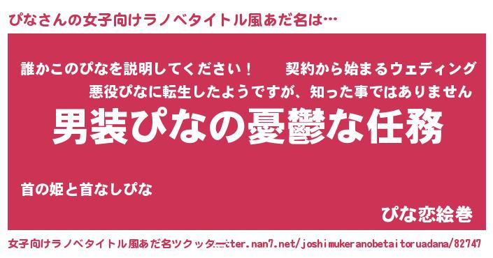 | 男性向けラノベタイトル風あだ名 | 『うちのぴなが世界を掌握している!』 |