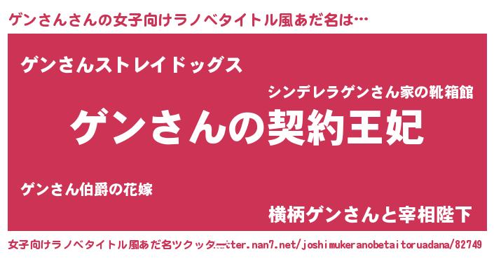 | 男性向けラノベタイトル風あだ名 | 『誰もが恐れるあのゲンさんが、ぼくの専属メイドになるようです。』 |