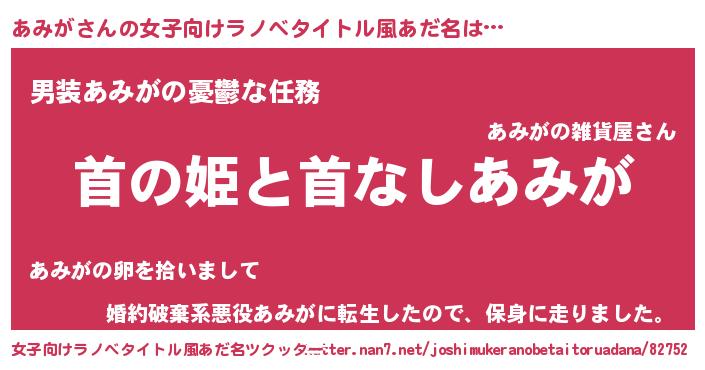 | 男性向けラノベタイトル風あだ名 | 『はたらくあみがさま!』 |