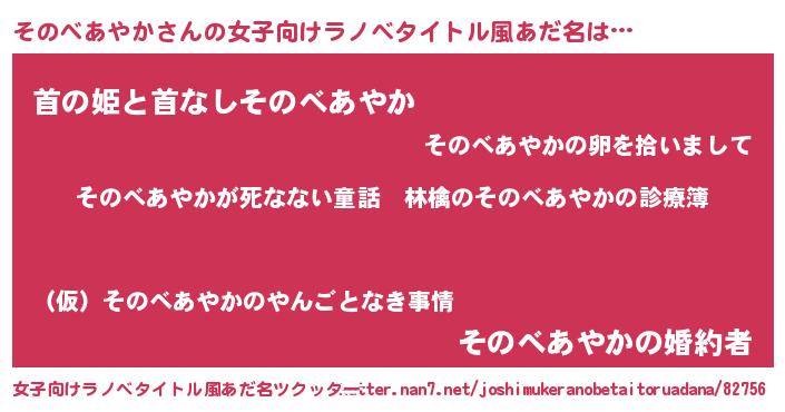 | 意味不明あだ名 | 『住所不定無職そのべあやか(47歳)』 |