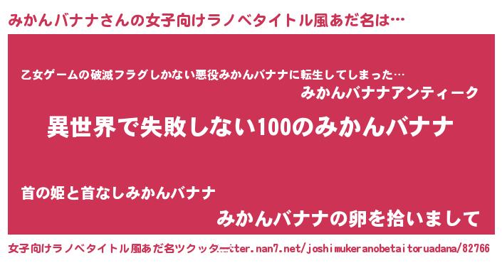 | 男性向けラノベタイトル風あだ名 | 『みかんバナナという概念が存在しない退屈な世界 』 |