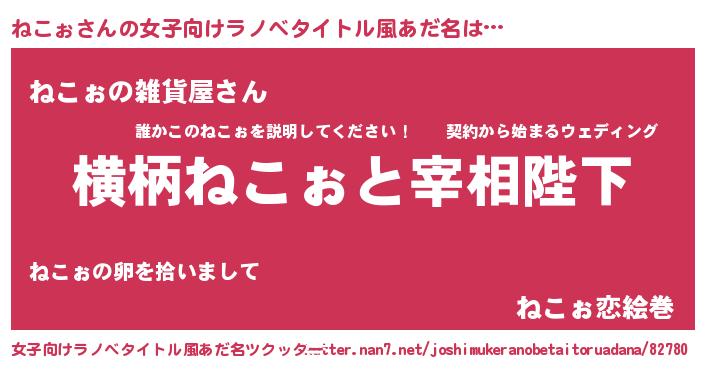 | 男性向けラノベタイトル風あだ名 | 『ねこぉに滅ぼされるだけの簡単なお仕事です』 |
