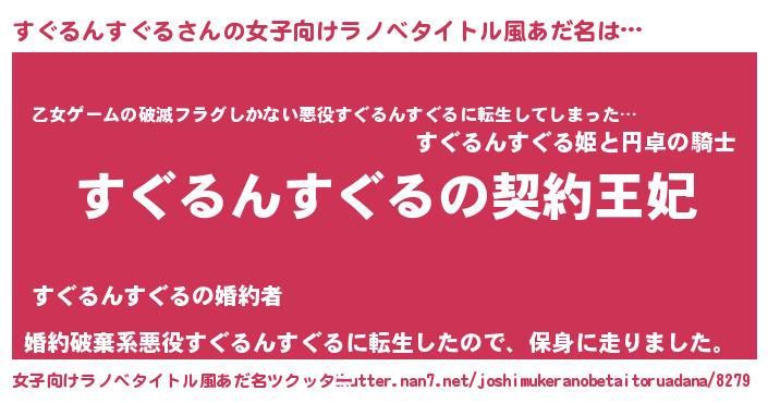 | 胡散臭い通販商品みたいなあだ名 | 『来世でも幸せになれる健康食品…その名も「すぐるんすぐる」』 |