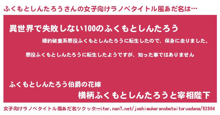| 意味不明あだ名 | 『住所不定無職ふくもとしんたろう(12歳)』 |