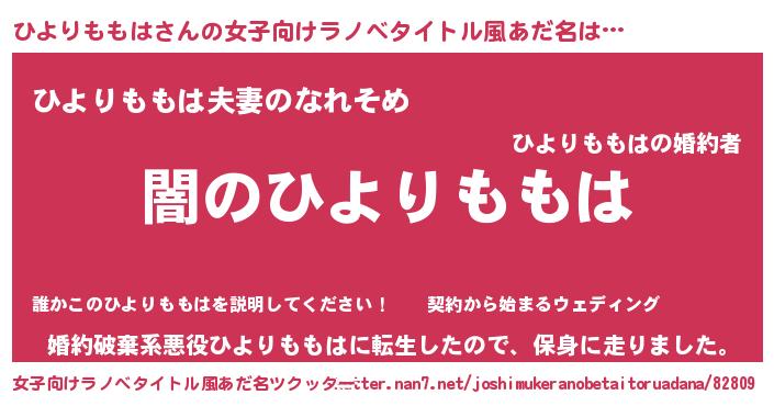 | 男性向けラノベタイトル風あだ名 | 『Re:ひよりももはから始める異世界生活』 |