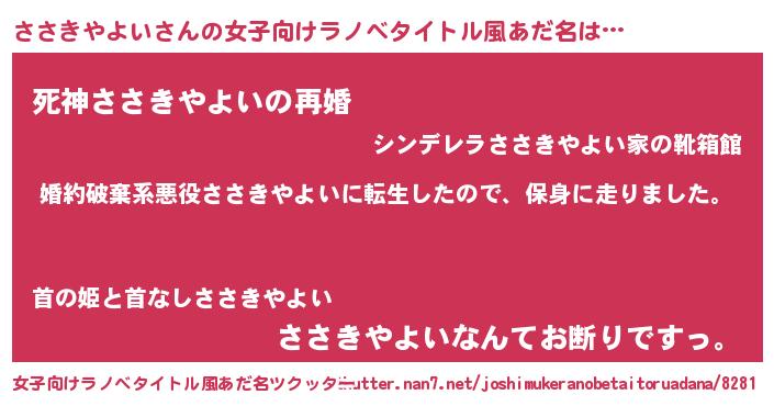 | 胡散臭い通販商品みたいなあだ名 | 『100人中100人が認めたマグネット磁石…その名も「ささきやよい」』 |