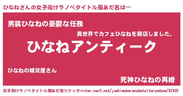 | 恥ずかしいあだ名 | 『ヒナネデラックス』『ひなちん』 |