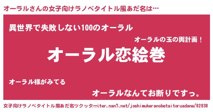 | 男性向けラノベタイトル風あだ名 | 『おまえをオタクにしてやるから、俺をオーラルにしてくれ! 』 |