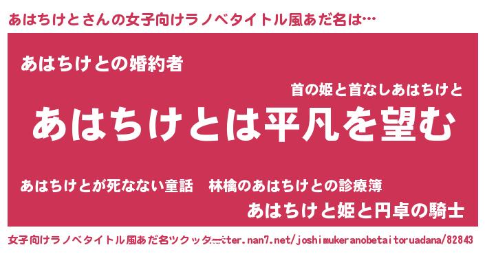| 男性向けラノベタイトル風あだ名 | 『ダンジョンにあはちけとを求めるのは間違っているだろうか』 |