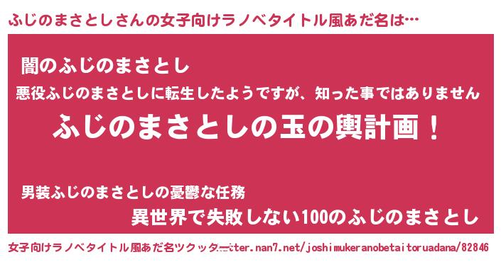 | 男性向けラノベタイトル風あだ名 | 『ふじのまさとし~年齢イコール彼女いない歴の魔法使い~』 |