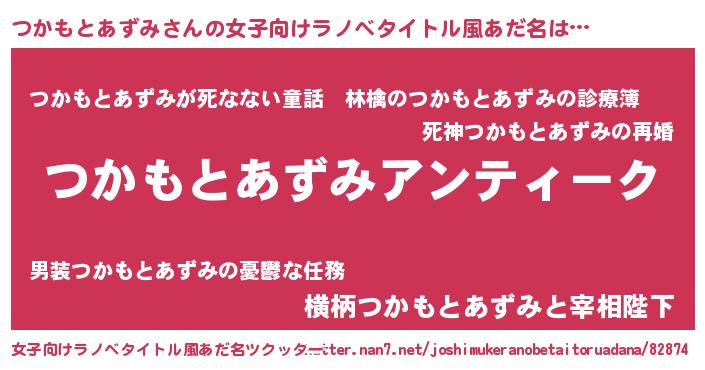 | ヘコむあだ名 | 『つかもとあずみ(苦笑)』『つかっぺ』 |