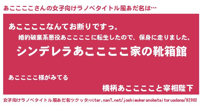 | 男性向けラノベタイトル風あだ名 | 『冴えないあここここの育てかた』 |