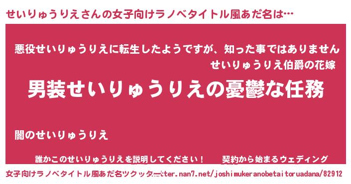| 男性向けラノベタイトル風あだ名 | 『うちのせいりゅうりえが世界を掌握している!』 |