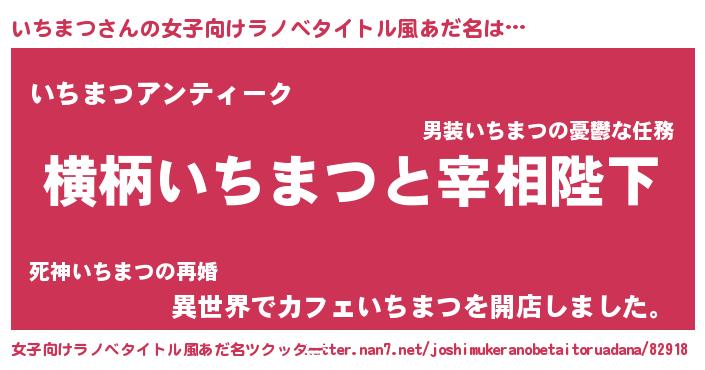 | 男性向けラノベタイトル風あだ名 | 『いちまつに滅ぼされるだけの簡単なお仕事です』 |
