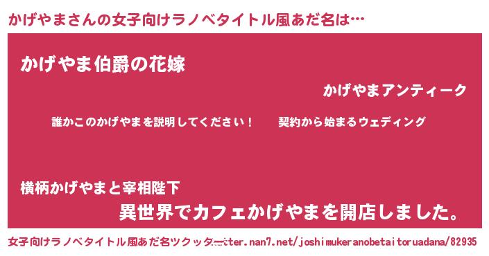 | ファンタジー風あだ名 | 『カゲフェル』『エターナルカゲヤマー』 |