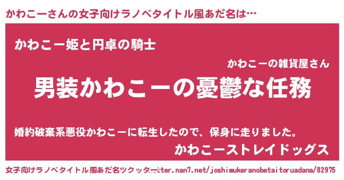 | 男性向けラノベタイトル風あだ名 | 『冴えないかわこーの育てかた』 |