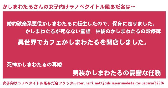 | 胡散臭い通販商品みたいなあだ名 | 『前代未聞の健康食品…その名も「かしまわたる」』 |