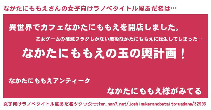 男性向けラノベタイトル風あだ名 | 『なかたにももえ~年齢イコール彼女いない歴の魔法使い~』 |