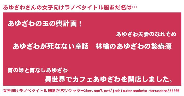 | 意味不明あだ名 | 『住所不定無職あゆざわ(93歳)』 |