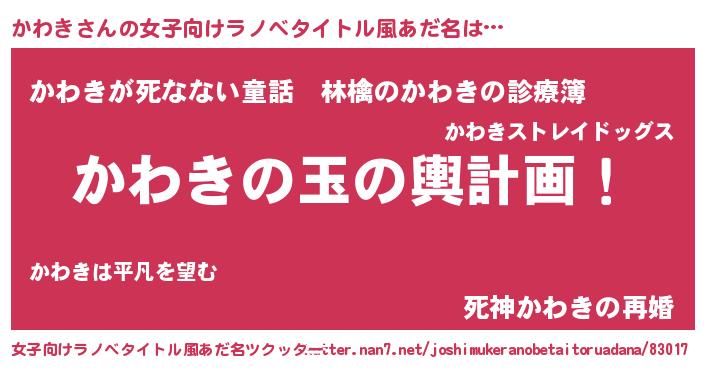 | ヒーロー風カッコイイあだ名 | 『仮面カワダー』『正義の使者かわき』 |