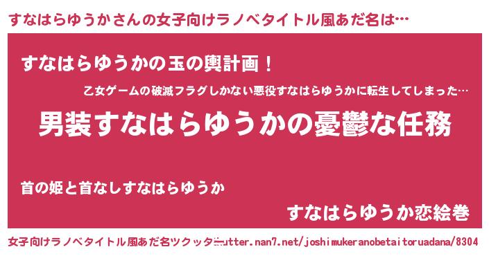 | 男性向けラノベタイトル風あだ名 | 『うちのすなはらゆうかが世界を掌握している!』 |