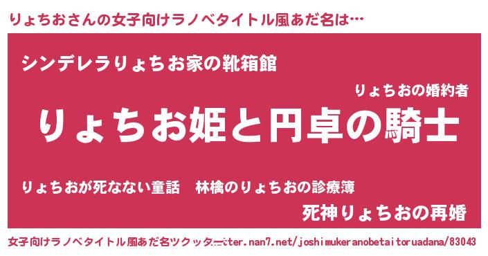 | 男性向けラノベタイトル風あだ名 | 『りょちおの憂鬱』『緋弾のリョチオ』 |