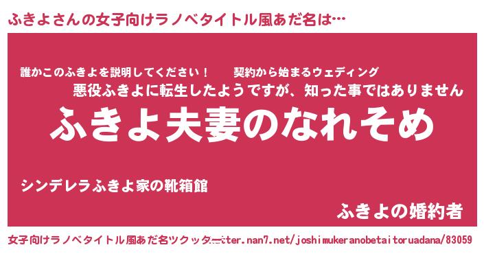 | 男性向けラノベタイトル風あだ名 | 『おまえをオタクにしてやるから、俺をふきよにしてくれ! 』 |