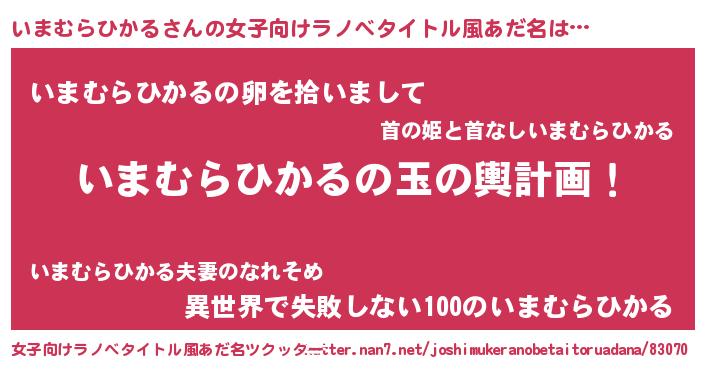 | 男性向けラノベタイトル風あだ名 | 『転生したらいまむらひかるだった件』 |