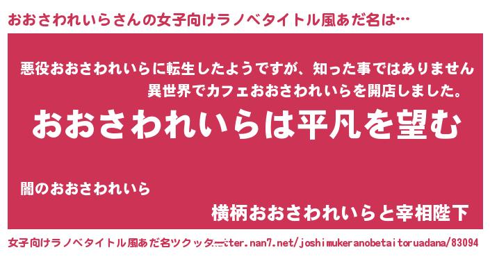 | ヘコむあだ名 | 『おおお』『おおさわれいら(笑)』 |