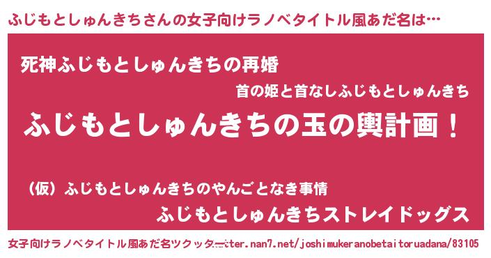 | 男性向けラノベタイトル風あだ名 | 『転生したらふじもとしゅんきちだった件』 |