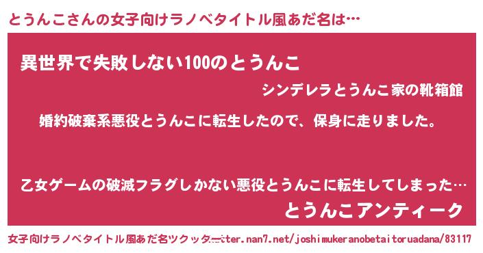 | 胡散臭い通販商品みたいなあだ名 | 『来世でも幸せになれる健康食品…その名も「とうんこ」』 |