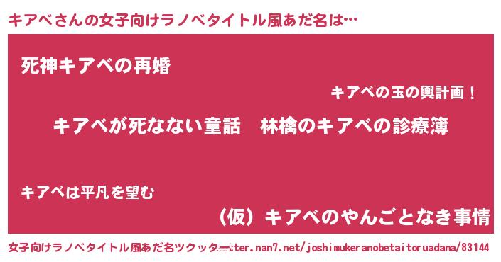 | 意味不明あだ名 | 『住所不定無職キアベ(79歳)』 |