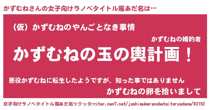 | 男性向けラノベタイトル風あだ名 | 『かずむね~年齢イコール彼女いない歴の魔法使い~』 |