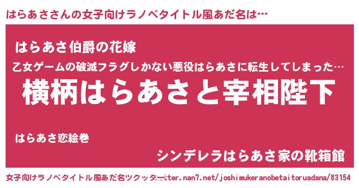 | 胡散臭い通販商品みたいなあだ名 | 『運命の人と巡り会える高級そうな壺…その名も「はらあさ」』 |