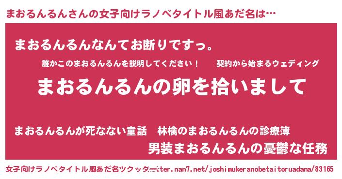 | 男性向けラノベタイトル風あだ名 | 『まおるんるんの嫁は女の子じゃないと思った?』 |