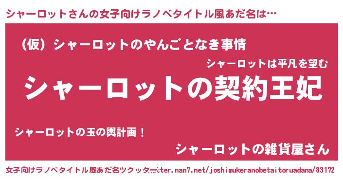 | 意味不明あだ名 | 『永久保存シャーロット』 |