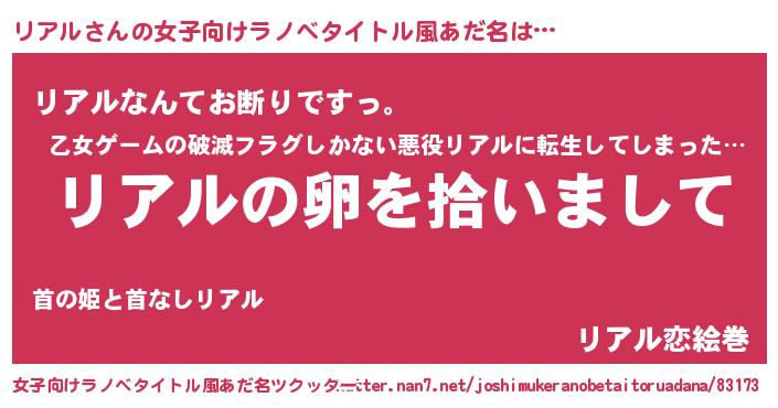 | 胡散臭い通販商品みたいなあだ名 | 『伝統あるサプリメント…その名も「リアル」』 |