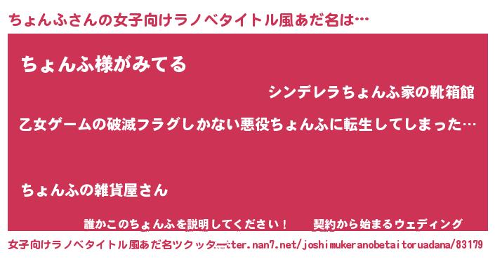 | 意味不明あだ名 | 『住所不定無職ちょんふ(74歳)』 |