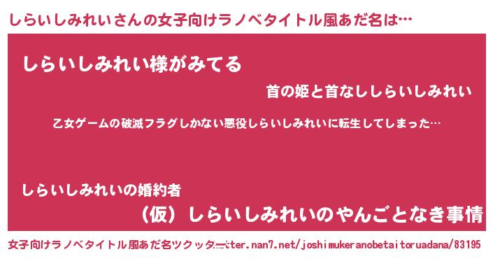 | 胡散臭い通販商品みたいなあだ名 | 『世界中を虜にした100年もののヴィンテージワイン…その名も「しらいしみれい」』 |