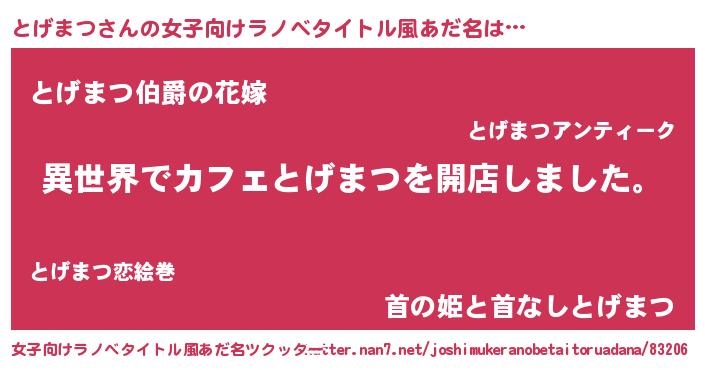 | 意味不明あだ名 | 『永久保存とげまつ』『自称とげまつ』 |