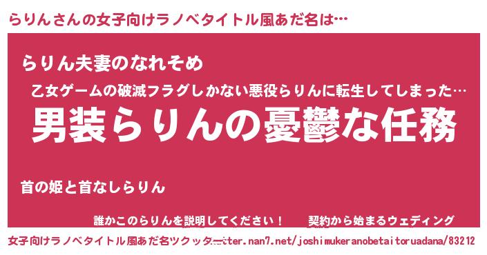 | 男性向けラノベタイトル風あだ名 | 『うちのらりんが世界を掌握している!』 |