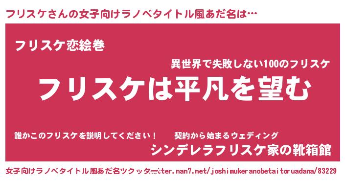 | 男性向けラノベタイトル風あだ名 | 『ダンジョンにフリスケを求めるのは間違っているだろうか』 |