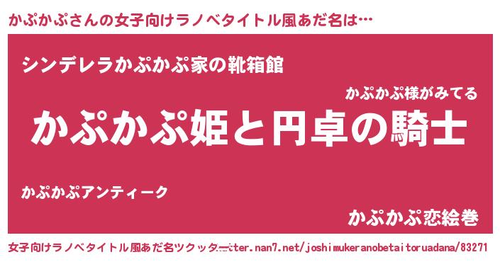 | ヒーロー風カッコイイあだ名 | 『スーパーカプカプ』『愛の使者かぷかぷ』 |
