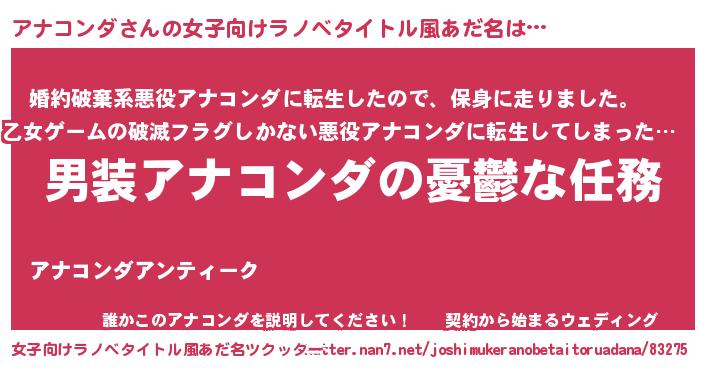 | 男性向けラノベタイトル風あだ名 | 『冴えないアナコンダの育てかた』 |