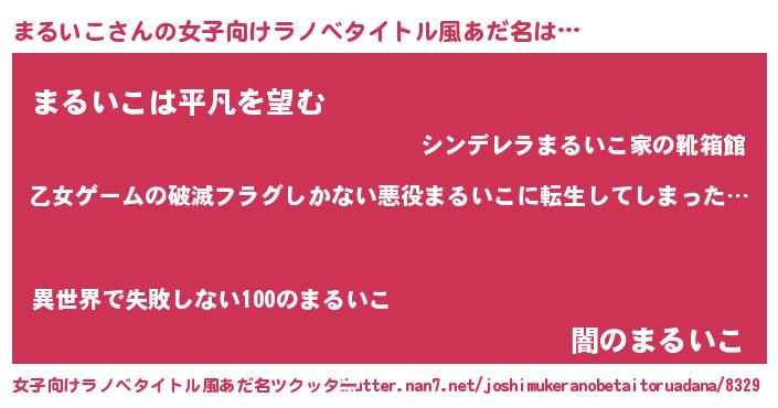 | 意味不明あだ名 | 『住所不定無職まるいこ(50歳)』 |
